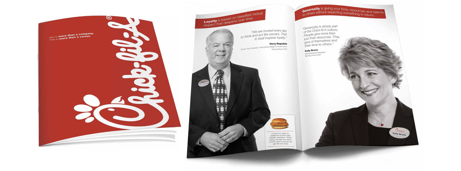 Chick-fil-A came to us to create an employment brand and a recruitment campaign to help it screen in the right candidates from an ever-growing pool of applicants to its corporate office. Additionally, we were tasked with internally reinforcing the close-knit, family-centered company culture to current employees.