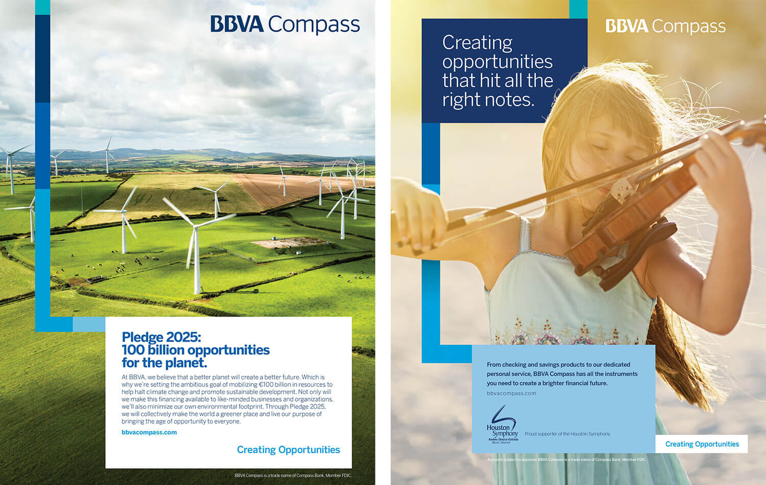 As BBVA’s partner, we do all of the work you’d expect for a financial institution. CD and money market banner ads. Free checking radio spots. And small business social posts. We also do the completely unexpected – everything from designing floats to shooting a Kitten ATM video. No matter the project, our goal is always the same: to deliver creative that helps BBVA achieve its goals.
