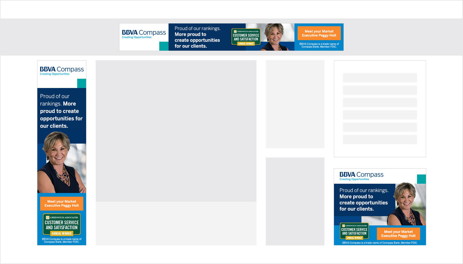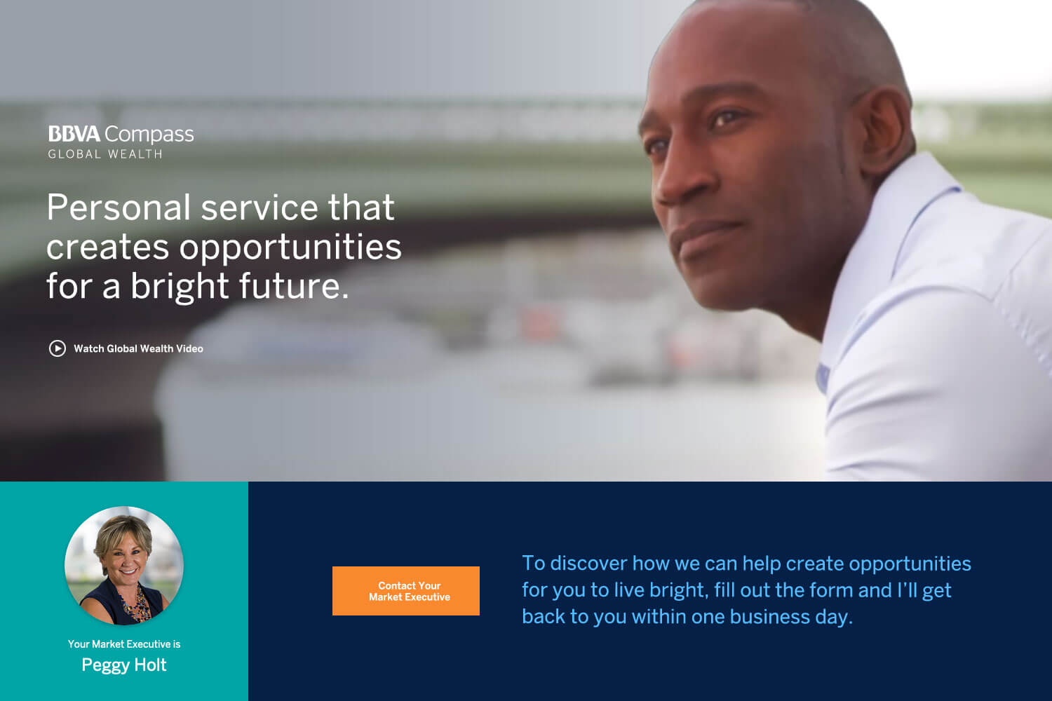 As a global brand with a local presence, BBVA stands apart from its competition. To highlight this unique position, o2 created a testimonial campaign featuring both Commercial Banking and Global Wealth clients and BBVA bankers. We then created individual banner ads and unique landing pages for every single market and banker to bring the “local” message to life in a personal way.