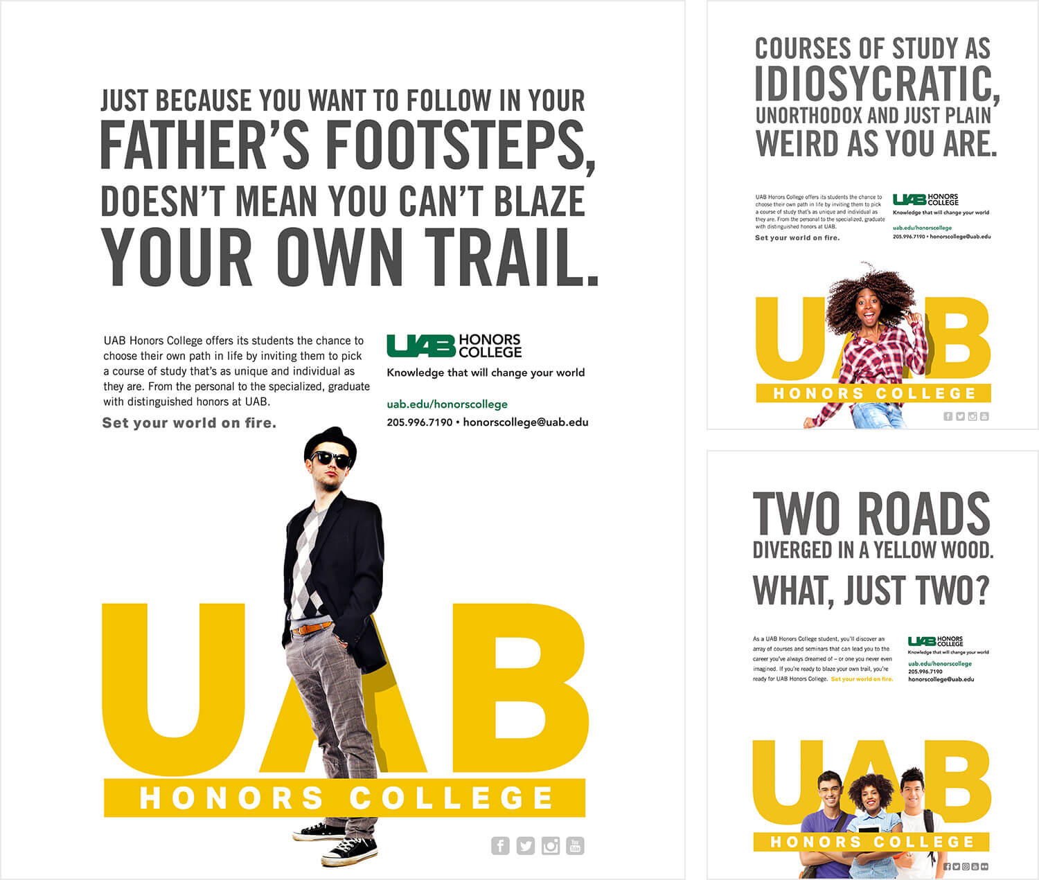 A competitive analysis revealed that the world of honors colleges is a world of sameness, where the top colleges express nearly identical messaging: “We’re a community of talented students who share a passion for learning.” In order to stand out, UABHC needed bold positioning that shifted the focus away from talking about what it offers to what students will receive.
